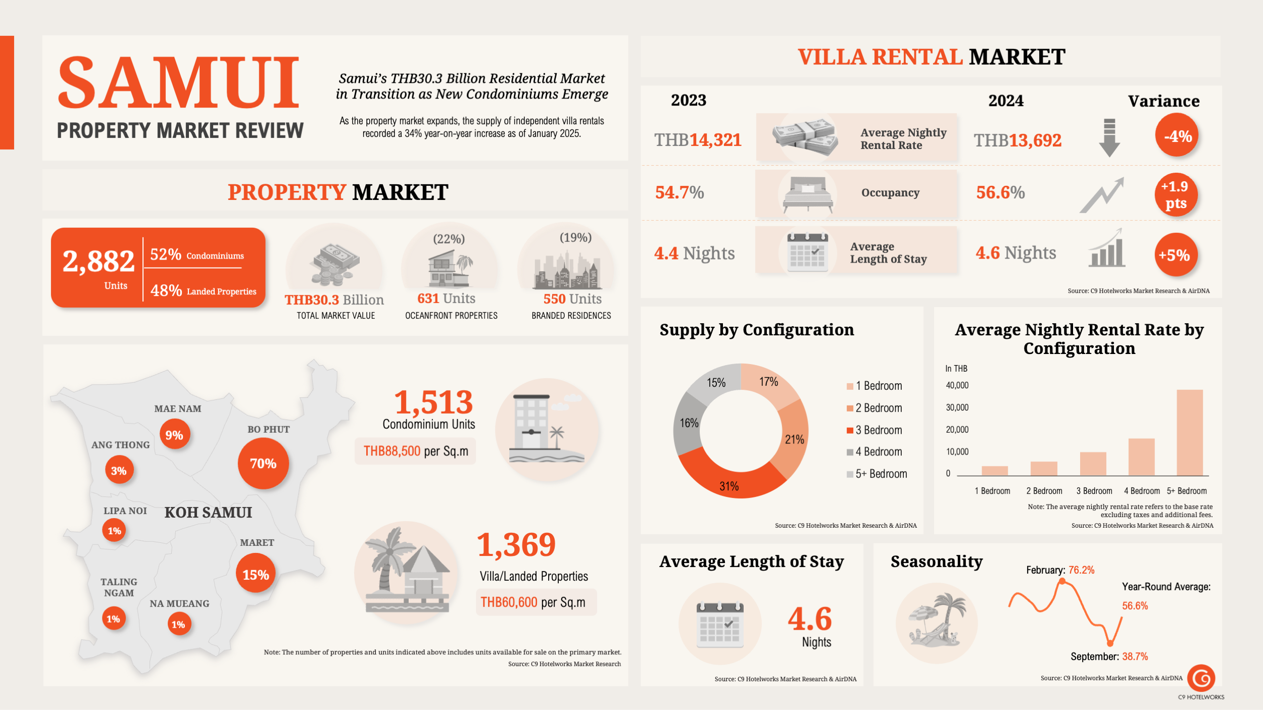 For buyers, developers, and investors, the THB30.3 billion (USD822 million) Koh Samui residential market offers both opportunities and challenges. The island’s evolving product mix is creating entry points for a more diverse investor base, while seasoned players will continue to leverage Samui’s enduring appeal as a world-class lifestyle destination.