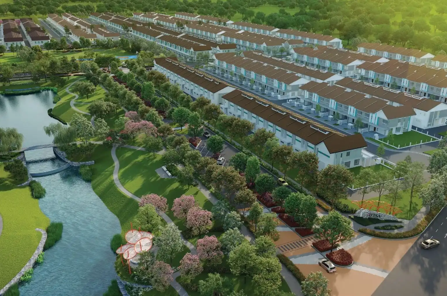 Facilities: Grand entrance, 5-acre scenic lake, 4.5-acre central park, 1.3-km lakeside jogging trail, playground, takraw court, badminton court, basketball court, pavilion, outdoor gym