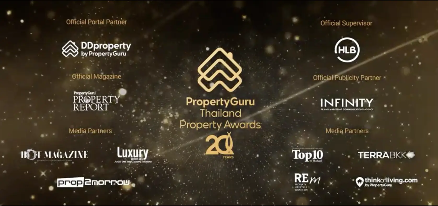The 20th PropertyGuru Thailand Property Awards was also made possible by official magazine Property Report by PropertyGuru; official publicity partner Infinity Communications; media partners Hot Magazine, Luxury Society Asia, Prop2morrow, REm, TerraBKK, Think of Living, and Top 10 of Thailand; and official supervisor HLB.